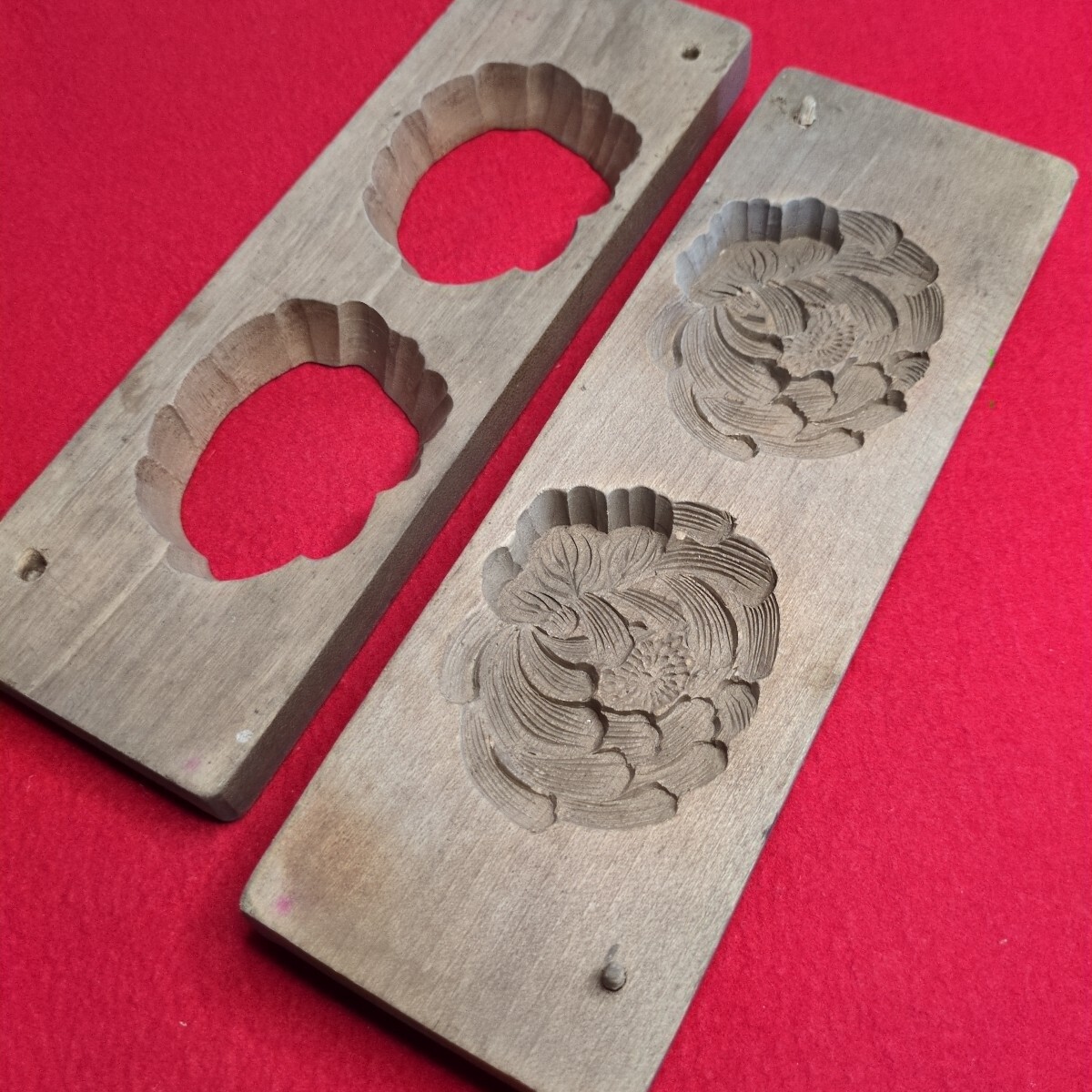 - 2508-04 和菓子 菓子型 古道具 昭和 レトロ 当時物 アンティーク 長期保管品 木彫