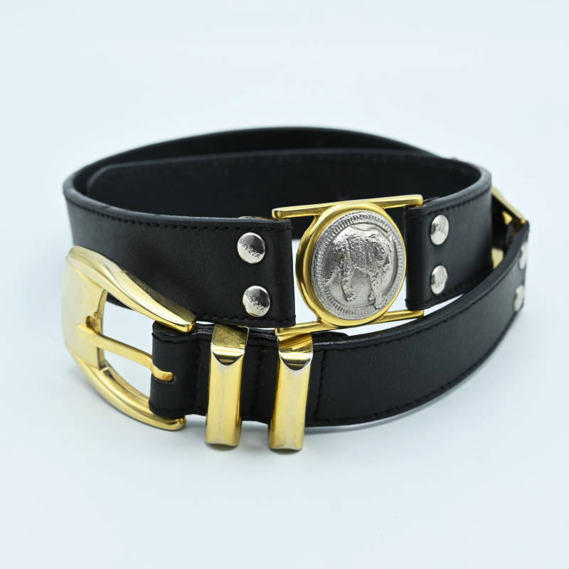 - VERSUS VERSACE ヴェルサス ヴェルサーチ アニマルロゴプレート レザー レディースベルト 65/26 ブラック/ゴールド S08-k009