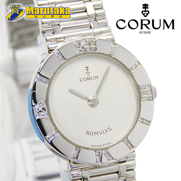 - 【コルム】レディース ロムルス 30.131.79V-58 プラチナ Pt950 無垢 ダイヤベゼル クォーツ ウォッチ 腕時計 CORUM O.H.済 中古 14r432-1