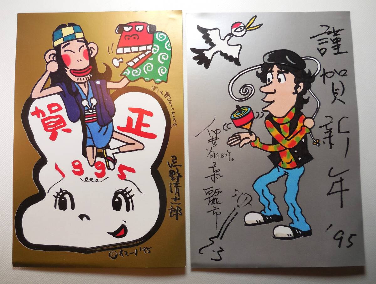 - 忌野清志郎 仲井戸麗市 1995年 平成7年 年賀はがき ハガキ 宣伝 販促品 2点 東芝EMI RCサクセション
