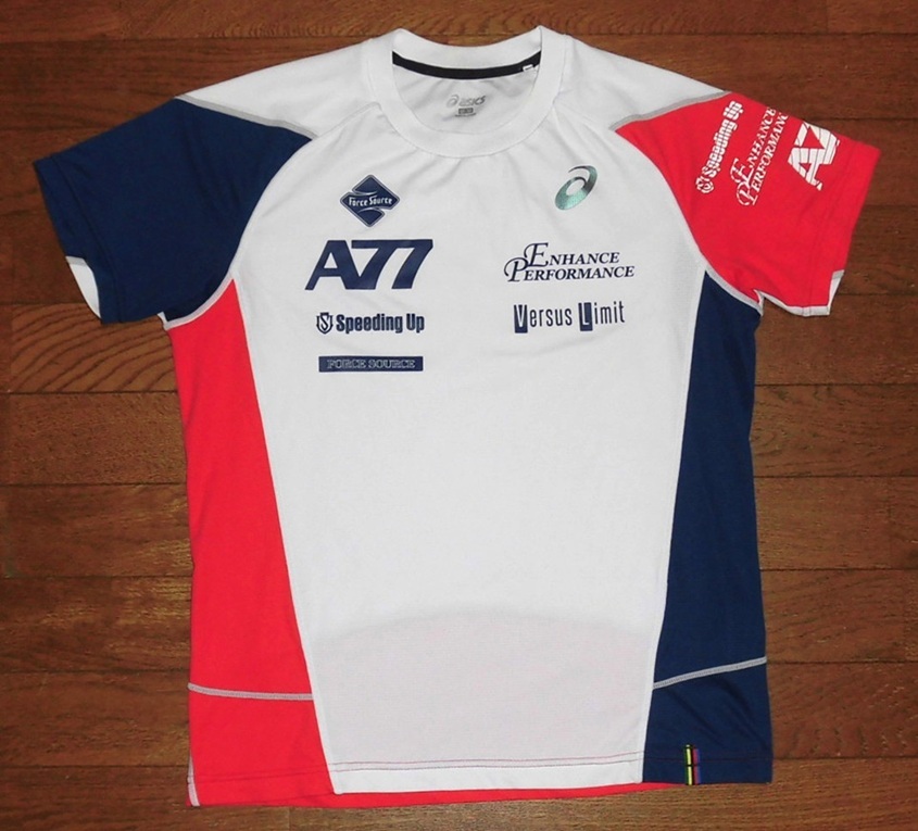 - asics アシックス A77 Double Pique Tシャツ 半袖 ドライ トレーニング シャツ 吸汗速乾 WHT-NVY-RED S 使用少 美品/ランニングジョギング