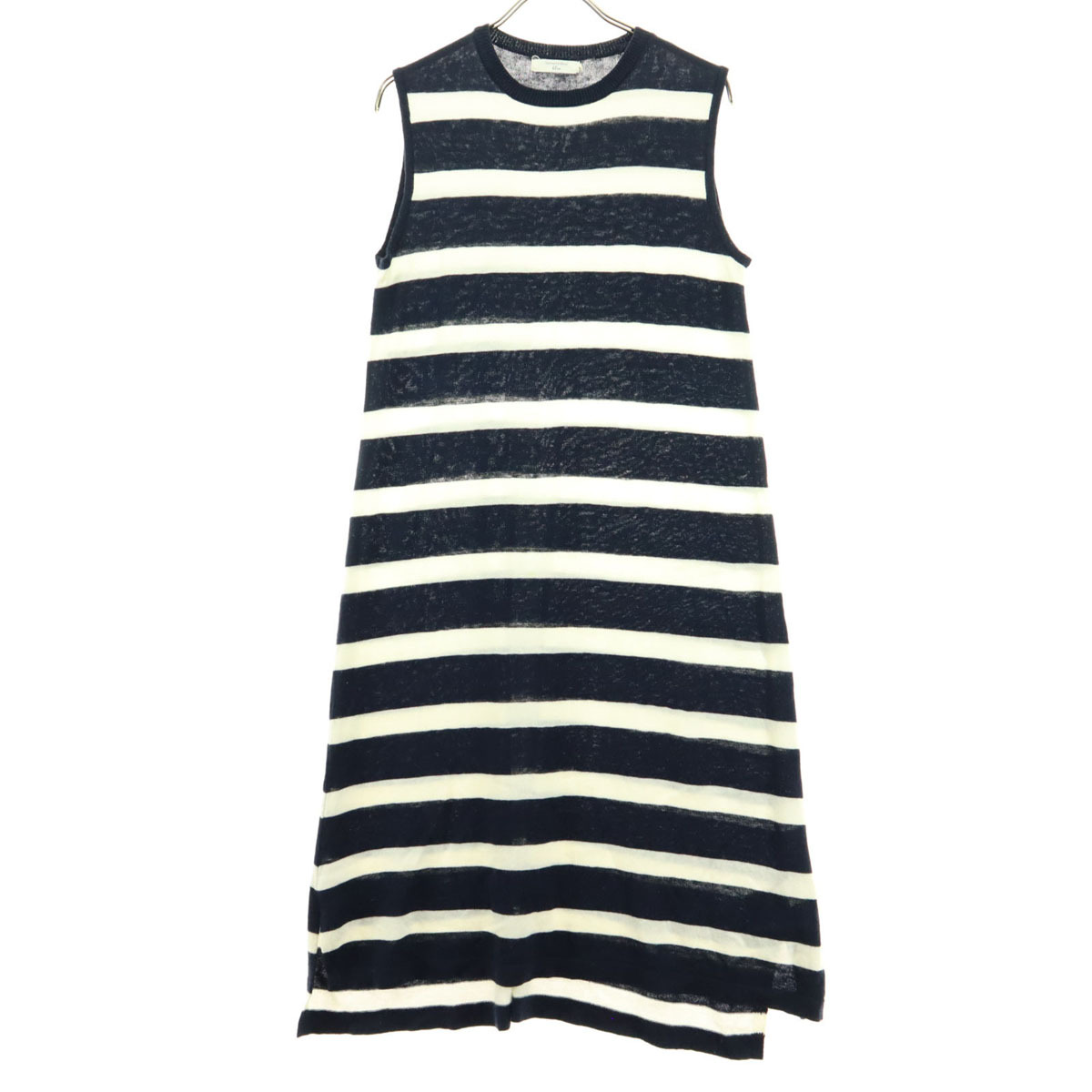 > SM2 サマンサモスモス ボーダー柄 ノースリーブ 膝丈ワンピース M ネイビー系 レディース