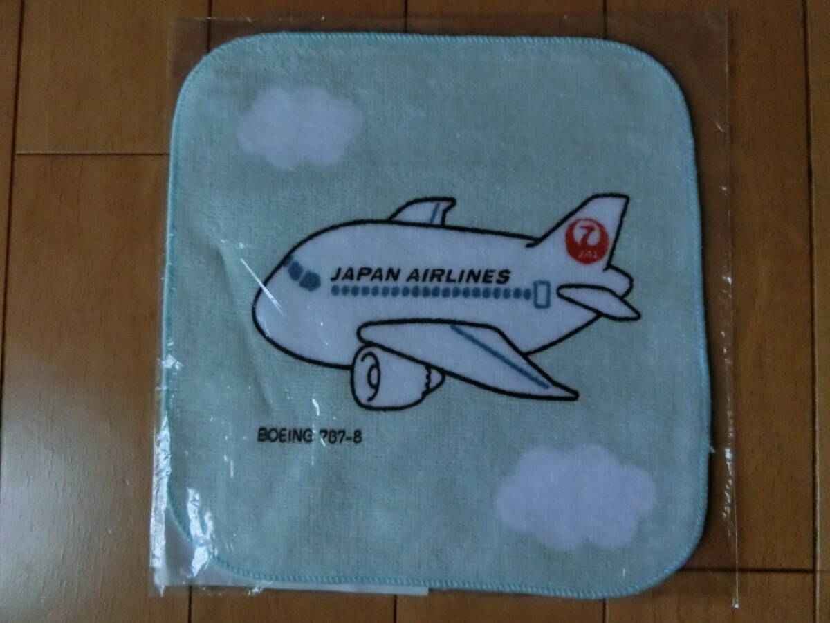 - 新品 JAL ボーイング 787-8 ドリームライナー ミニタオル 飛行機 搭乗記念 日本航空 旅客機 非売品 タオルハンカチ ハンドタオル 水色 新品