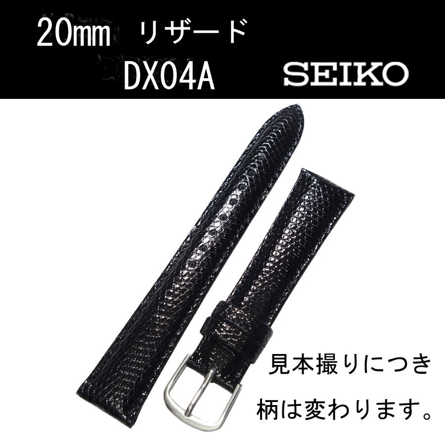 - セイコー リザード DX04A 20mm 黒 時計ベルト バンド 切身 ステッチ付 新品未使用正規品 送料無料