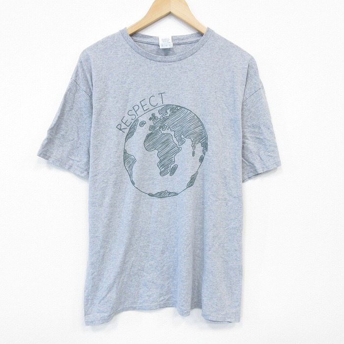 > XL/古着 半袖 Tシャツ メンズ 地球 大きいサイズ クルーネック グレー 霜降り 25jul29 中古