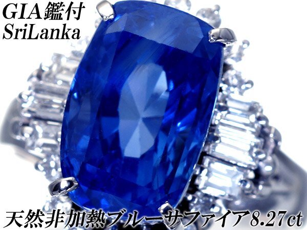 - 1円~【ジュエリー極】GIA鑑 極上品 超希少 超特大天然非加熱ブルーサファイア8.27ct&ダイヤ 超高級Pt850リング h7654zum【送料無料】