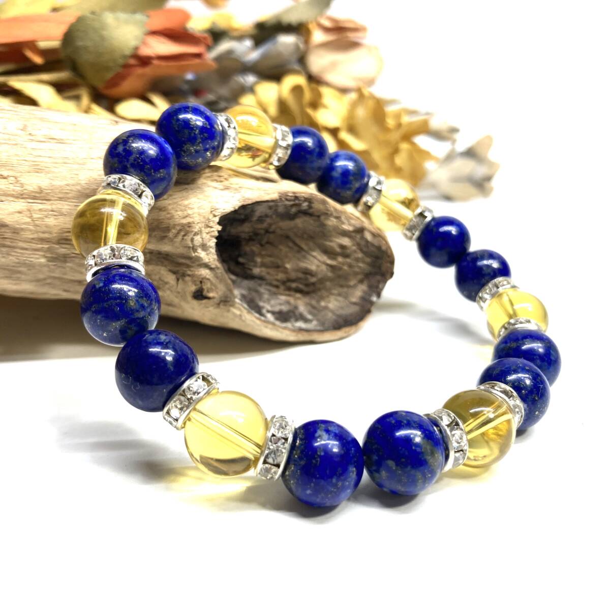 > ラピスラズリ&シトリン パワーストーン ブレスレット 天然石ブレス (シルバー) 10mm メンズ・レディース 金運 ☆