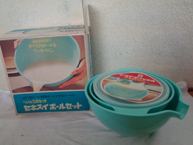 - 昭和レトロ セキスイ ボールセット-便利な3点セット/片口ボール・水切りボール・蓋付ボール/ボウルセット/未使用に近い美品-長期保管品