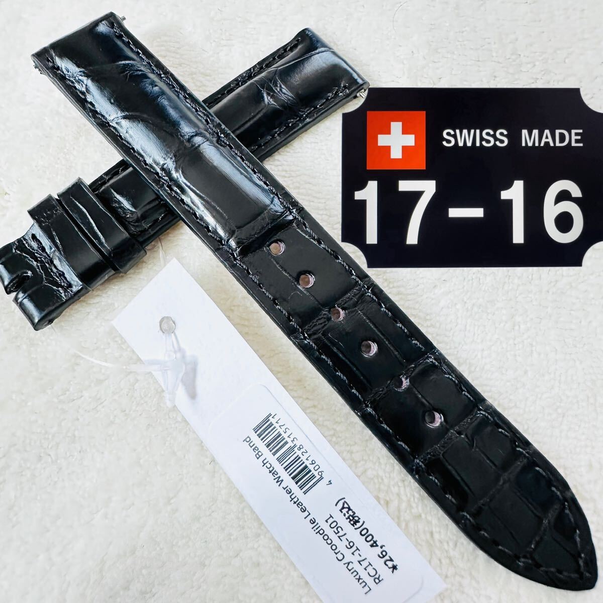 - 7501#17mm-16mmブラック★本物クロコダイルベルト★スイス製