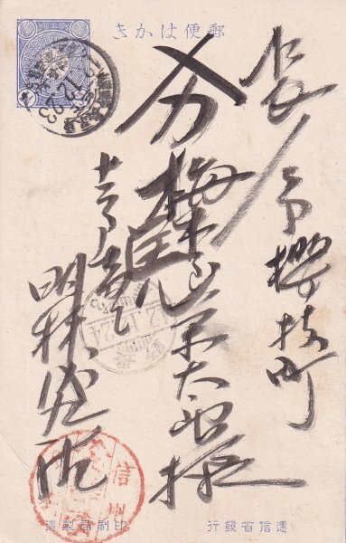 - 菊枠無しはがき 時刻入型鉄郵印 東京長野線/下三 42.12.23 上長間 エンタイア