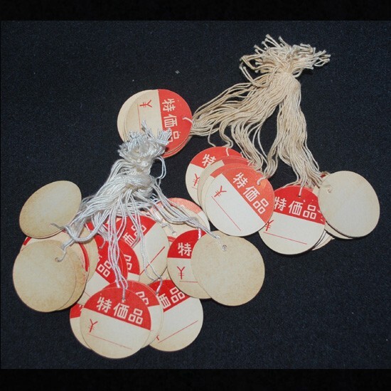> ●2191● 昭和雑貨 ◆ レトロ 紐付値札 「 特価品 ¥ / w : 2 . 9 cm 」 100 枚程で ◆ 細かな洒落心、昭和の趣きを演出!