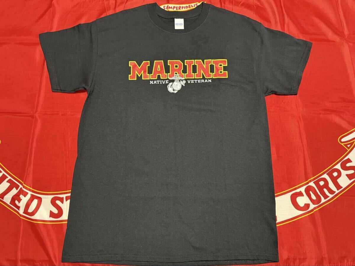 > 新品未使用 USMC MARINE アンカーアンドグローブプリント NATIVE VETERAN コットンTシャツ GILDAN LARGE BLACK