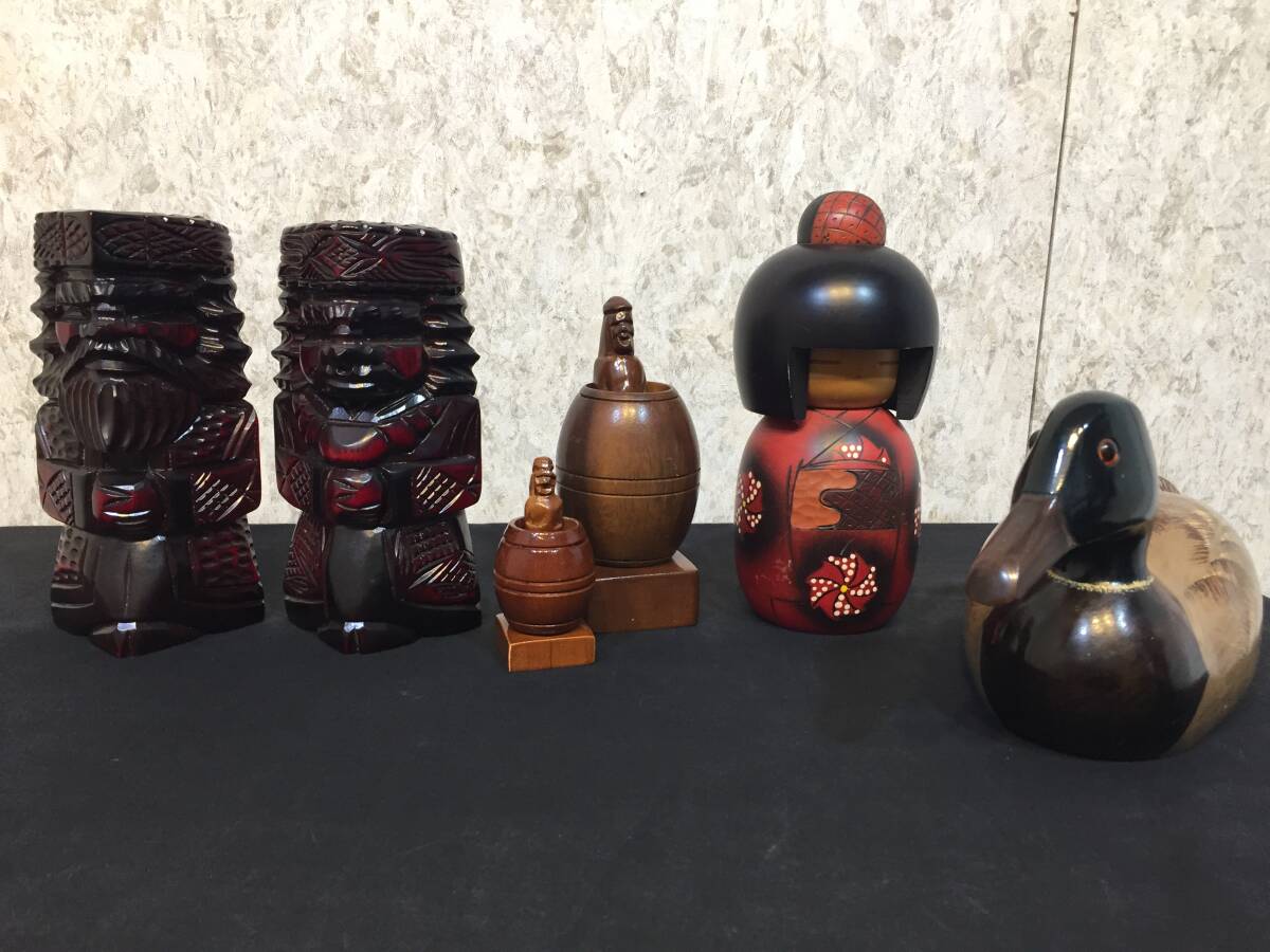 - 『 木製雑貨セット 』6点 人形置物 ニポポ人形 からくり人形 こけし人形 鳥置物 インテリア 置物 レトロ ディスプレイ ★古時家★