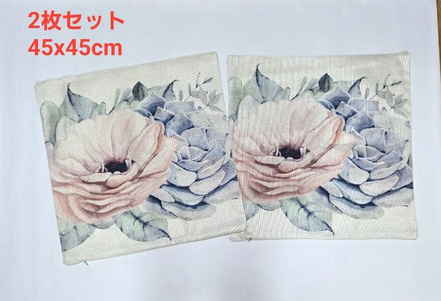 - クッションカバー 2枚セット リネン 麻 水彩画風 花柄 インテリア 45x45cm カバーのみ