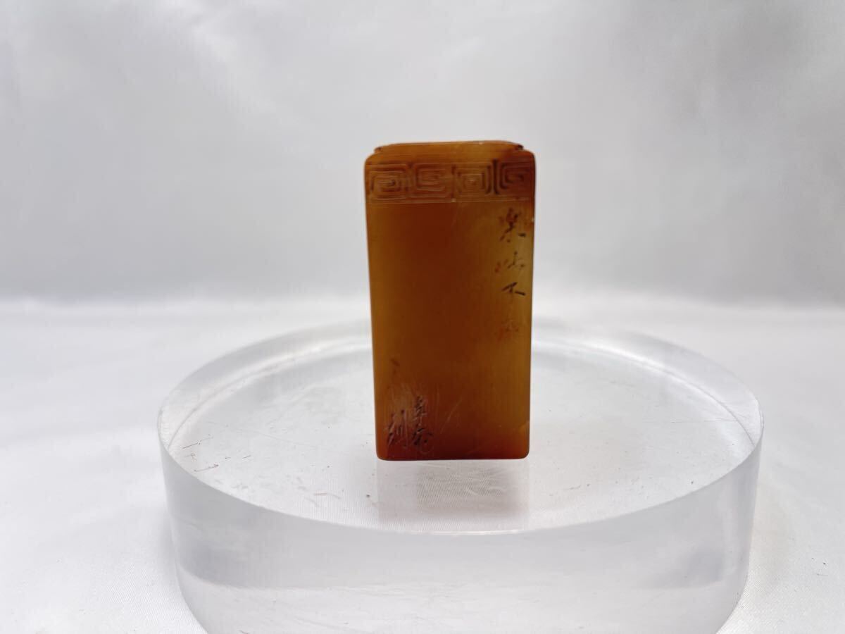 - 【A676】壽山石 田黄銘文印章 印材 細密彫刻 文房具 書道具 古賞物 置物 装飾 飾り 收藏品 時代物 中国古美術
