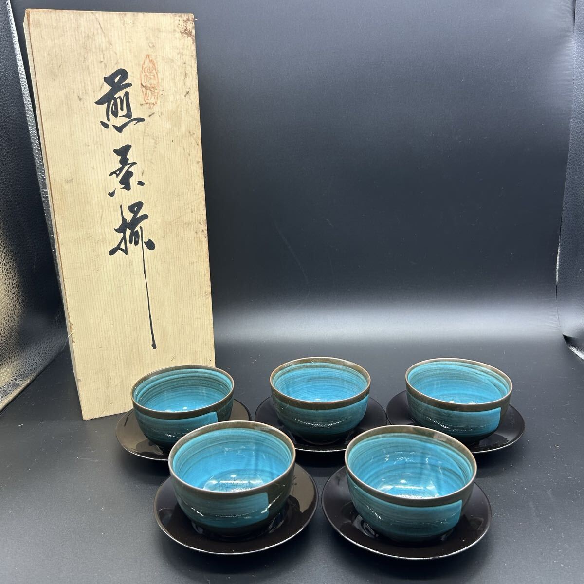 - 煎茶揃 洛陽清水 湯呑 湯呑み 小皿 茶托 茶器 陶器 和食器 エ8