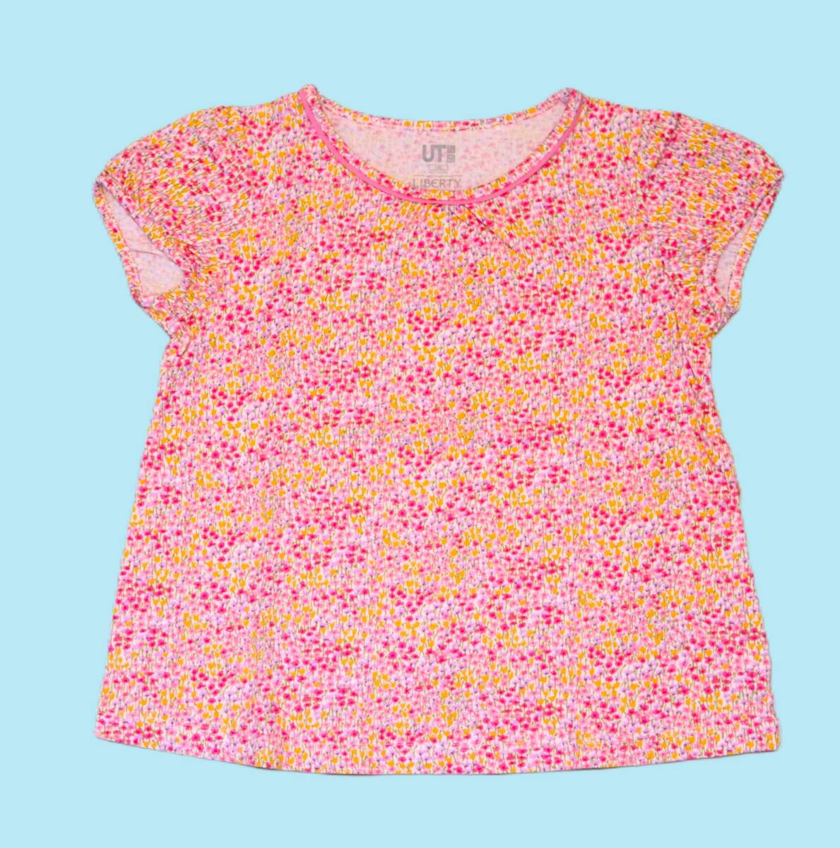- 新品未使用 ユニクロUT LIBERTY (濃ピンク・薄いピンク・橙・紫) 小花 Tシャツ 120㎝ リバティー