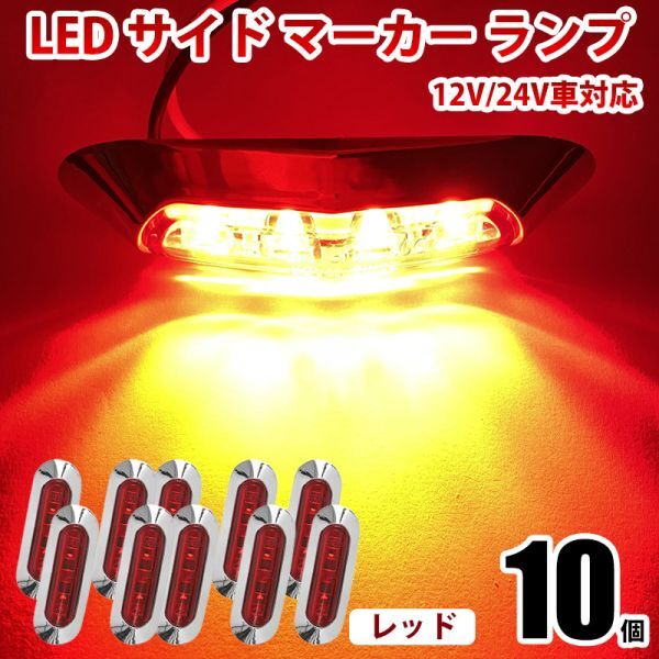 > LED サイドマーカー ランプ レッド 4連 小型 12V/24V兼用 トラック ダンプ クリア 防水IP68 路肩灯 車幅灯 10個セット WK24