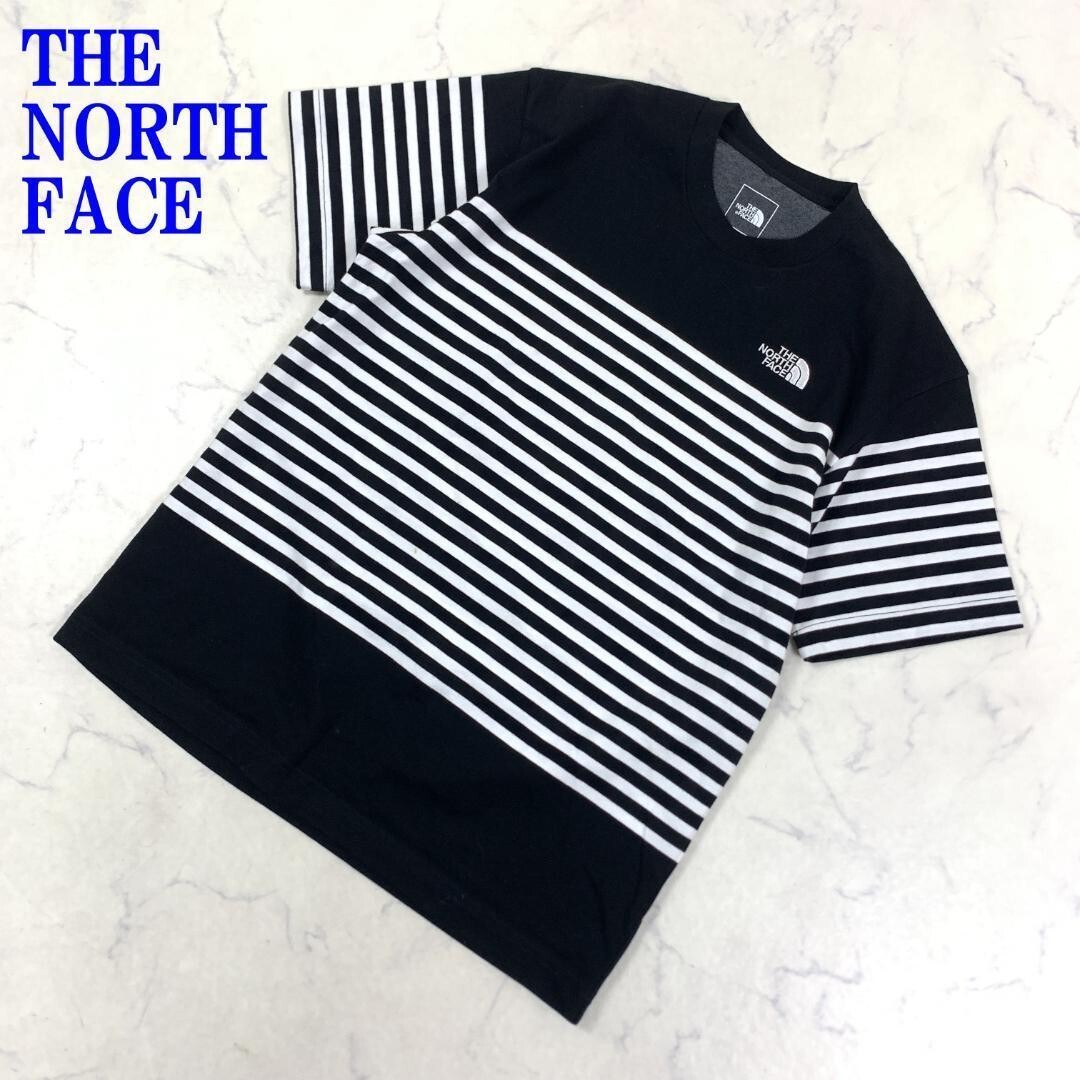 > ノースフェイス 半袖Tシャツ 黒 白 THE NORTH FACE ボーダー ブラック ホワイトコットンポリエステル S C3625