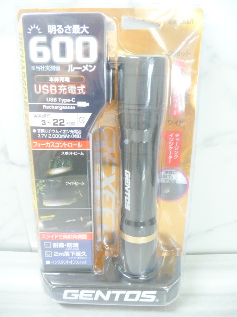> ☆新品 GENTOS/ジェントス レクシード 600ルーメン 懐中電灯 LEDライト 充電式ハンディライト RX-286R スライドフォーカス搭載(A846)