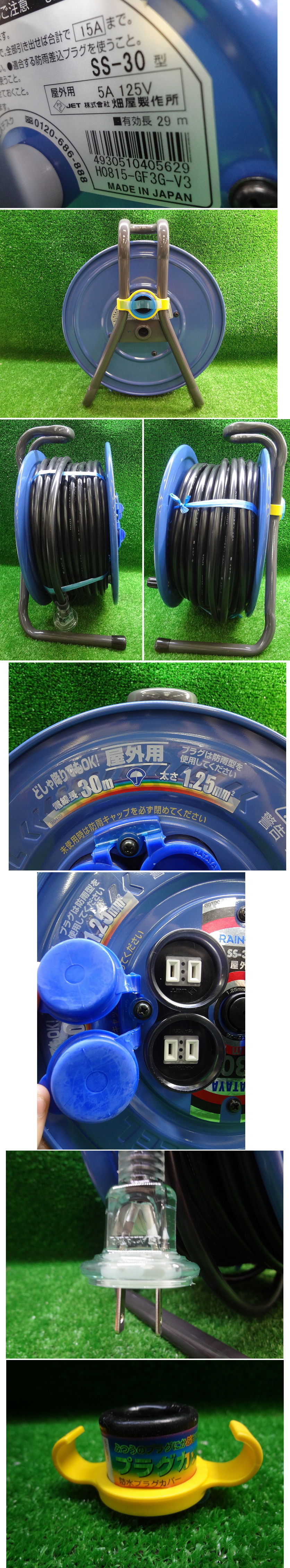 > Kトみ1095■HATAYA ハタヤ■屋外用 コードリール■レインボー SS-30型■電工ドラム 防雨型 30m 延長コード 防雨キャップ付 工具