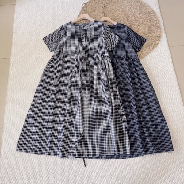 > lh 0708 ワンピース Aライン フリーサイズ チュニック ナチュラル 綿100% 大人可愛 チェック柄 サラサラ 半開け 黒白