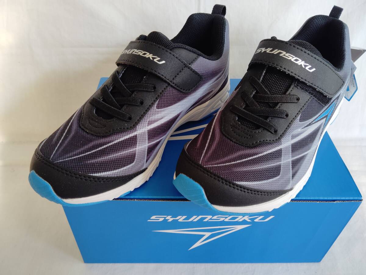 - 子供スニーカー 瞬足 214 19.5cm 2E ブラック 男の子 シュンソク スニーカー 軽量ひもマジック 黒系 通学、校内ばきに スポーツに