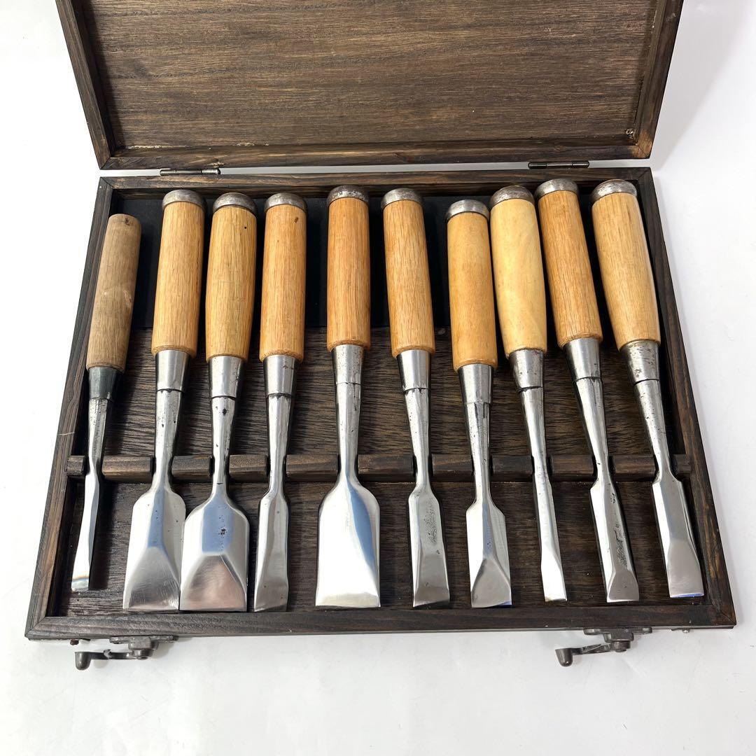 - (さ8)大工道具 鑿10本セット 追入盤 叩き鑿 突き鑿 専用桐箱付き 収納ケース付き