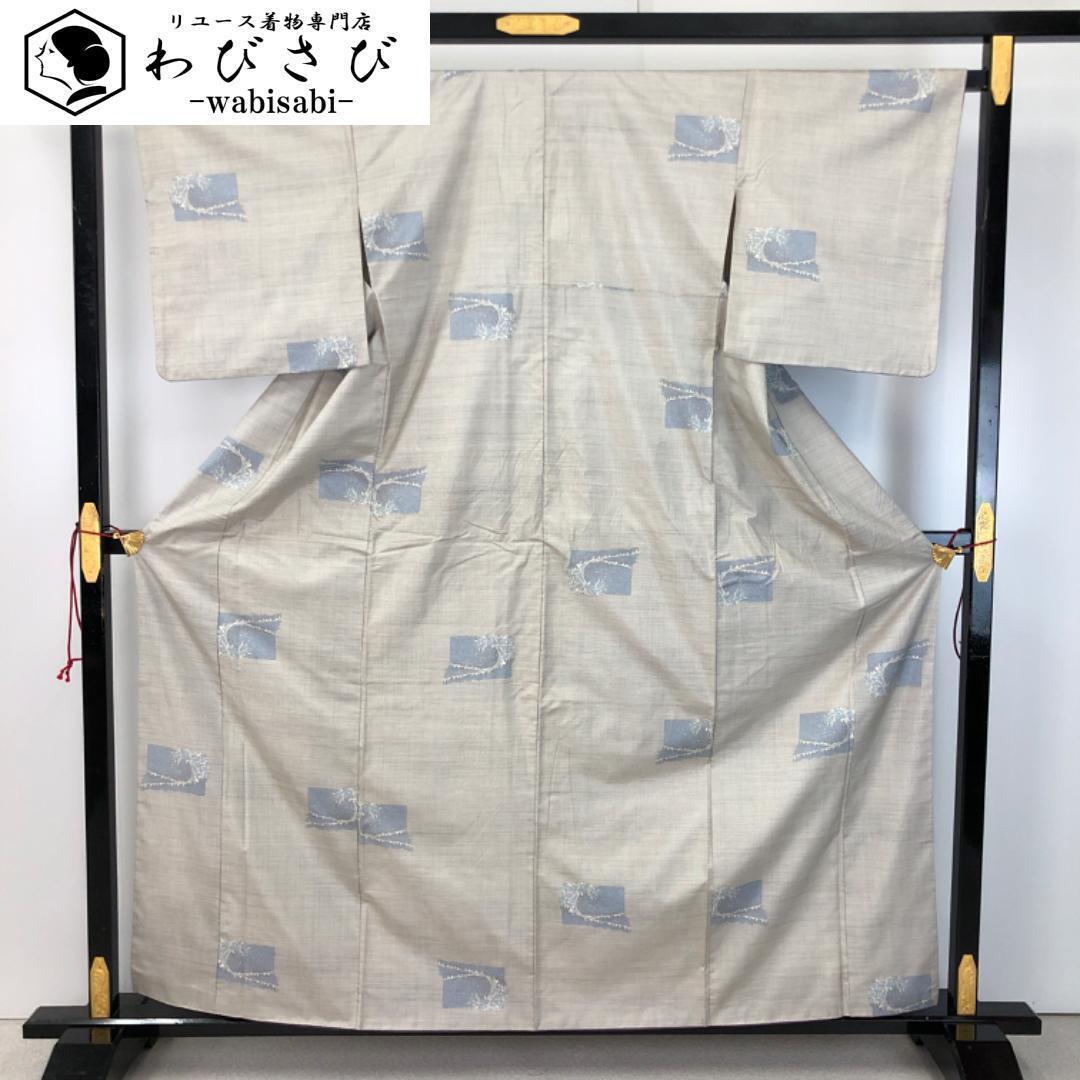 - 本場大島紬 白大島 たかくら 中田織物 四角に波模様 証紙付 砂色 K-4864