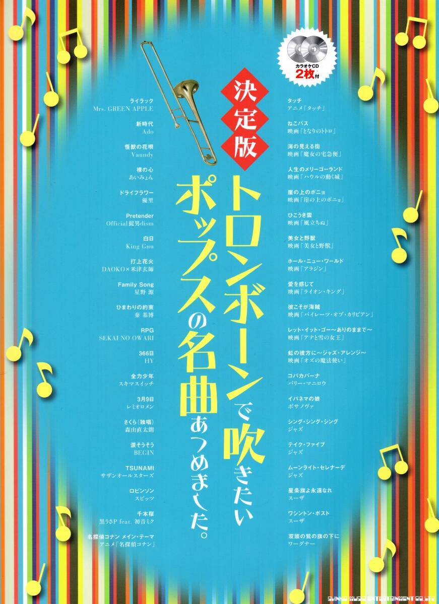 - 決定版 トロンボーンで吹きたいポップスの名曲あつめました。(カラオケCD2枚付) 楽譜 新品