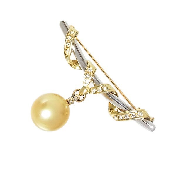 - K18 K18WG 白蝶真珠 パールブローチ ゴールデンカラーD0.24ct 0.05ct 9.3g 11.9mm
