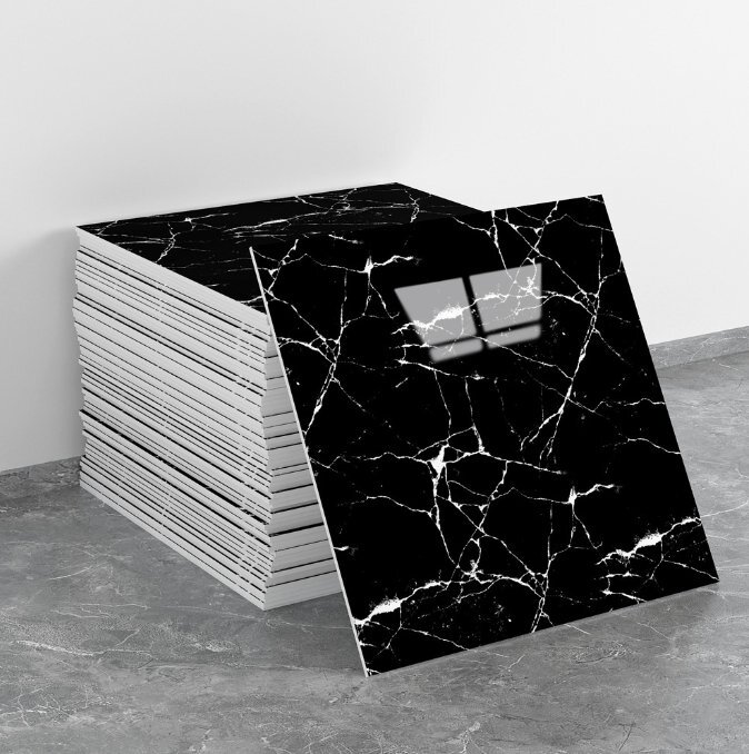 - 壁紙自接着防水防湿壁面フェルト板キッチン壁板模造大理石背景壁タイル貼りシール50枚▲ブラック