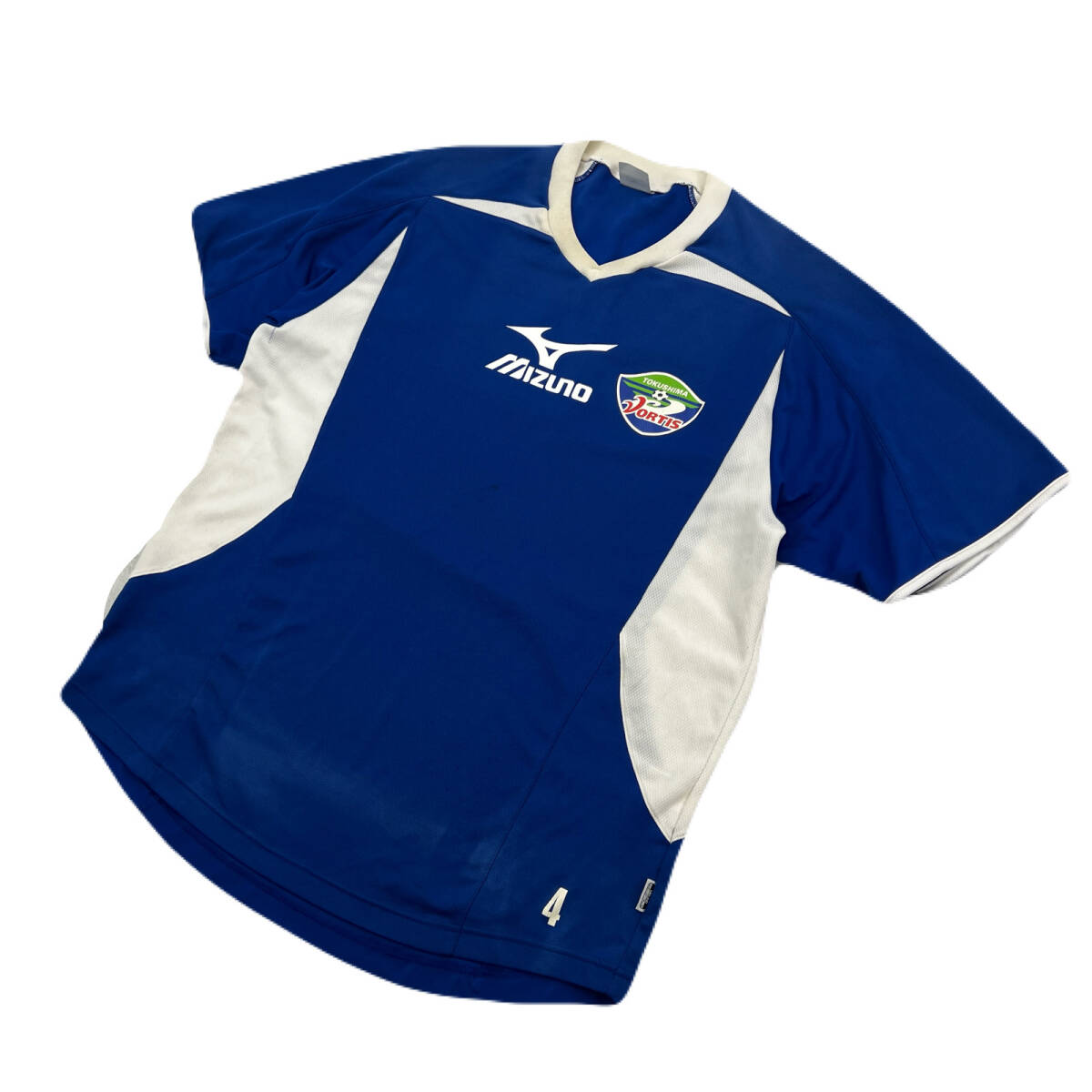 > ミズノ 徳島ヴォルティス ブルー ホワイト ゲームシャツ ユニフォーム 練習用 Oサイズ 【 希少 サッカー応援などにも 】●N284