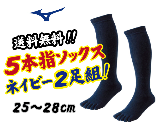 - 新品即決&送料無料!ミズノ「5本指ソックス・ネイビー」2足組/25~28cm/52UW08414
