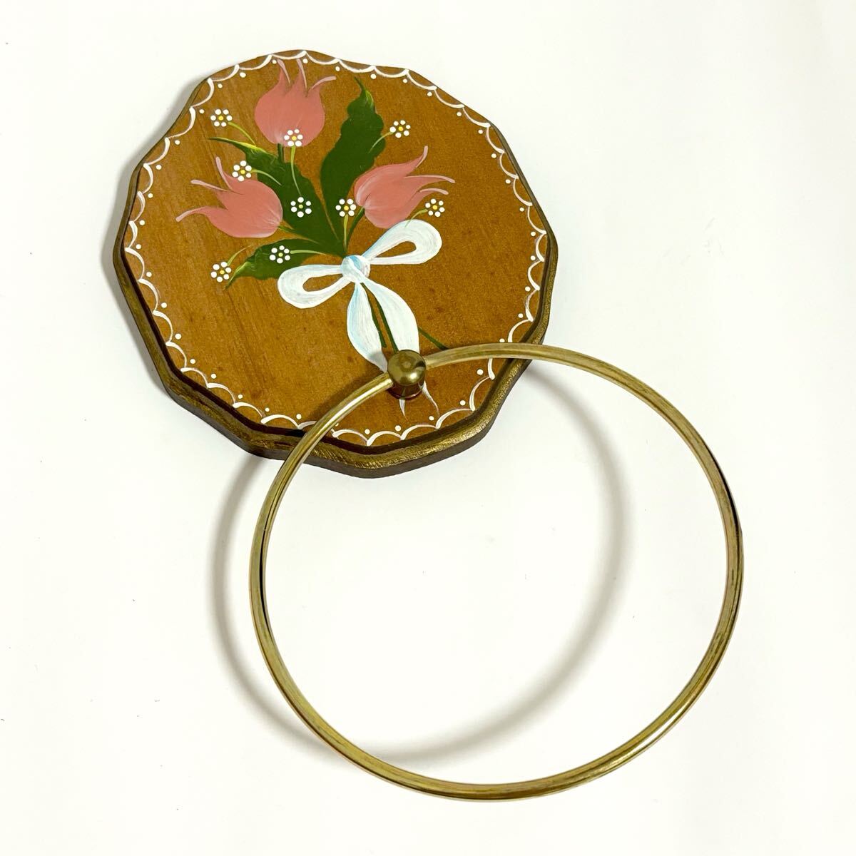 > 新品未使用 トールペイントチューリップブーケ タオルハンガー カントリー 花束 タオル掛け タオルリング アンティークゴールド ビンテージ