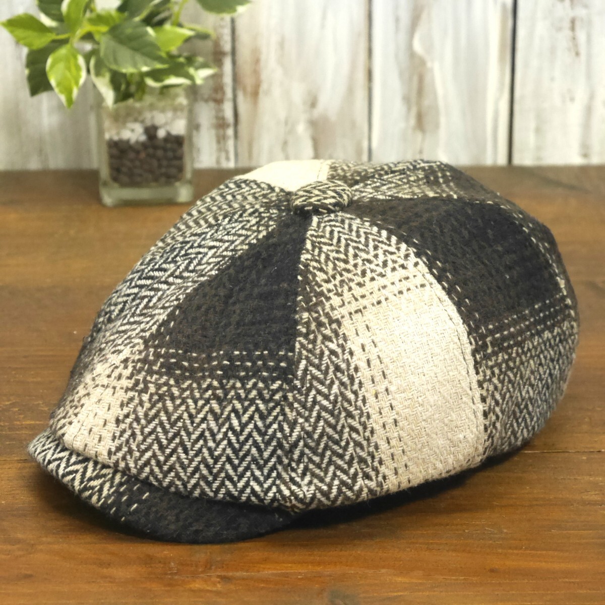 - ウール風 キャスケットハンチング ヘリンボーン グラデーション ベージュ ブラウン ニュースペーパー サイズ調整可 送料\450 男女兼用