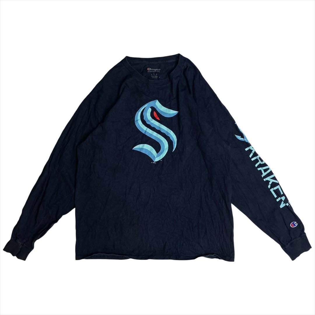 - Vintage Champion チャンピオン NHL シアトル クラーケン ロング Tシャツ 長袖 メンズ L ネイビー 古着 ロンT ビンテージ ヴィンテージ