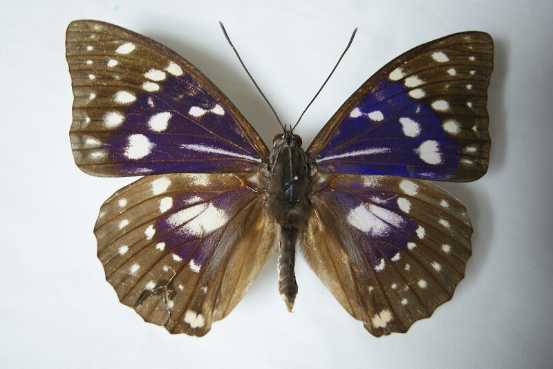 - A2★当時物保管*大型ブルーオオオムラサキ幅10cm×縦7cm(国内で捕獲・兵庫県 笹部)透明専用ケース入り