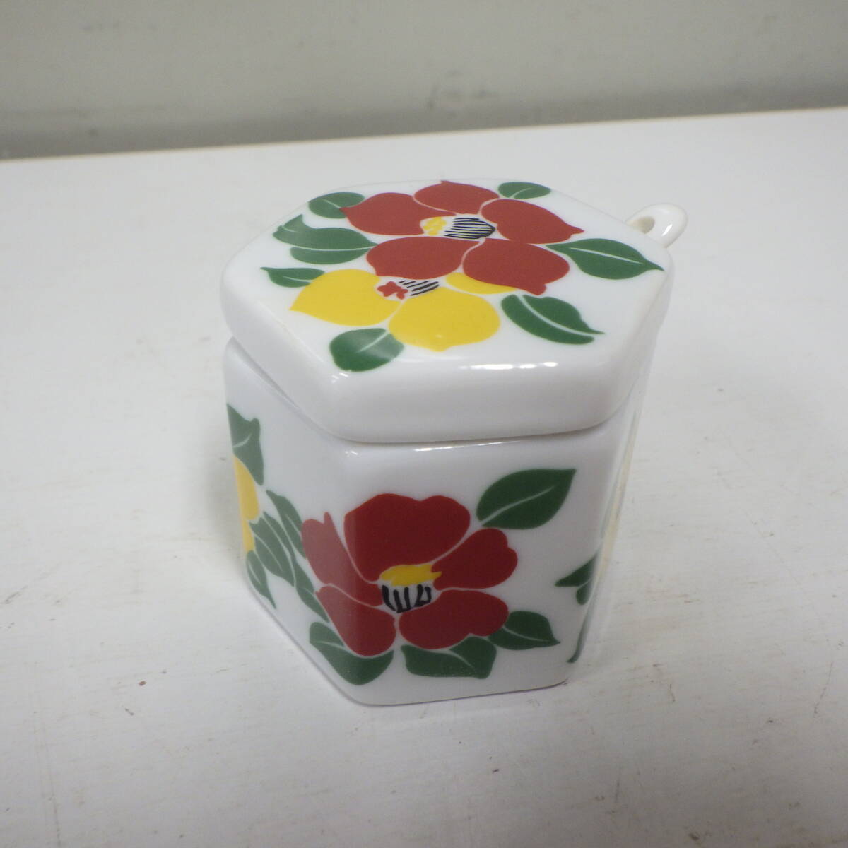 - 昭和 レトロ 花柄 六角形 陶器製 薬味入れ 一味庵