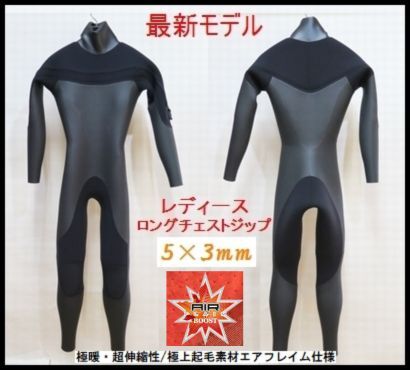 > 最新!!【極暖★超やわらか起毛 エアフレイム仕様】 ロングチェストジップ/セミドライ5×3mm 2 レディース/ウェットスーツ
