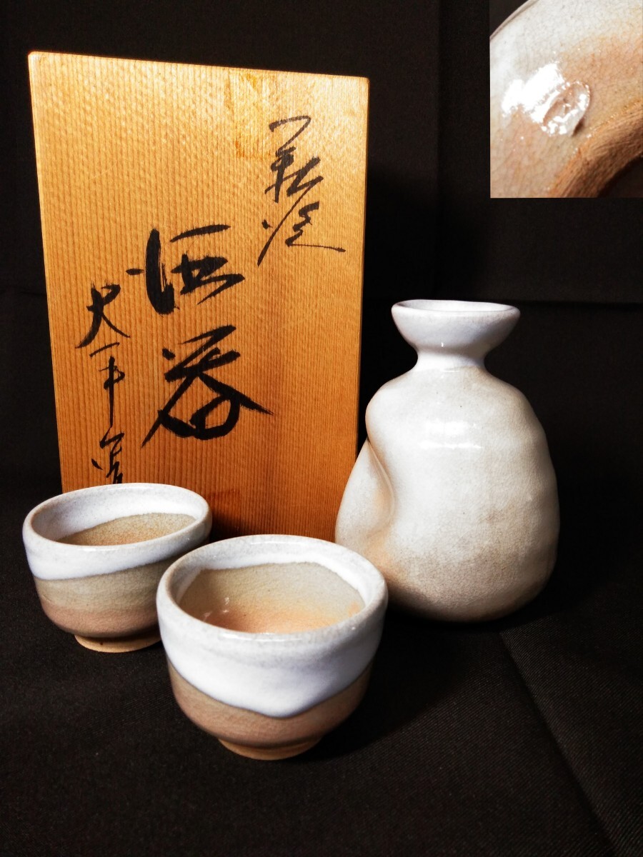 - 萩焼 大平山 酒器セット 徳利 ぐい呑 猪口 酒杯 (検索) 陶器 工芸 日本酒 酒瓶 盃 杯 酒盃 古道具 酒道 銚子 懐石 会席 陶芸 レトロ