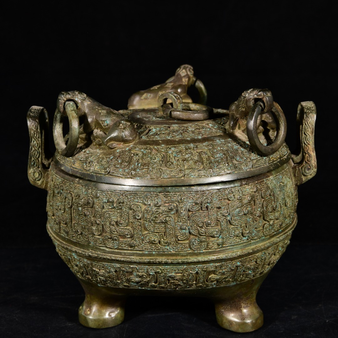 - ■TX120■戦国時代 青銅器 蟠紋 四足鼎 銘文入れ・絶品 時代物 古玩 唐物 古陶磁器■