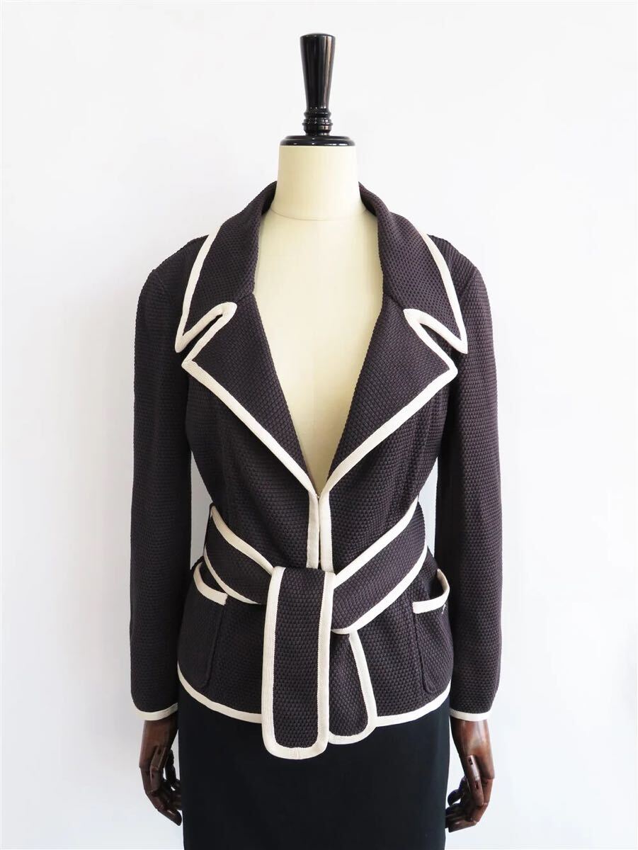 - 70305 CHANEL / シャネル バイカラーパイピング シルク ニット ジャケット