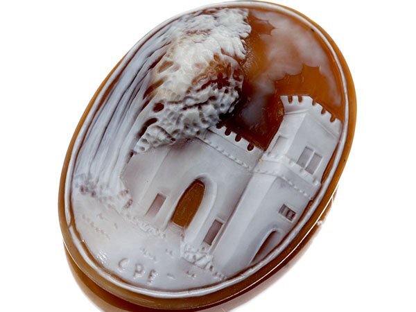 - 【ジュエリー極】作家品 CPE刻印有 立体的な樹木と建物 シェルカメオルース 44.8mm×33.7mm a2346-i【送料無料】