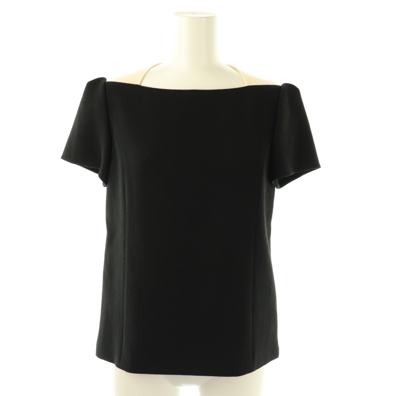> フォクシー FOXEY ウールスクエアネックトップス ブラウス 半袖 黒 ブラック 白 ホワイト /AT ■OS レディース