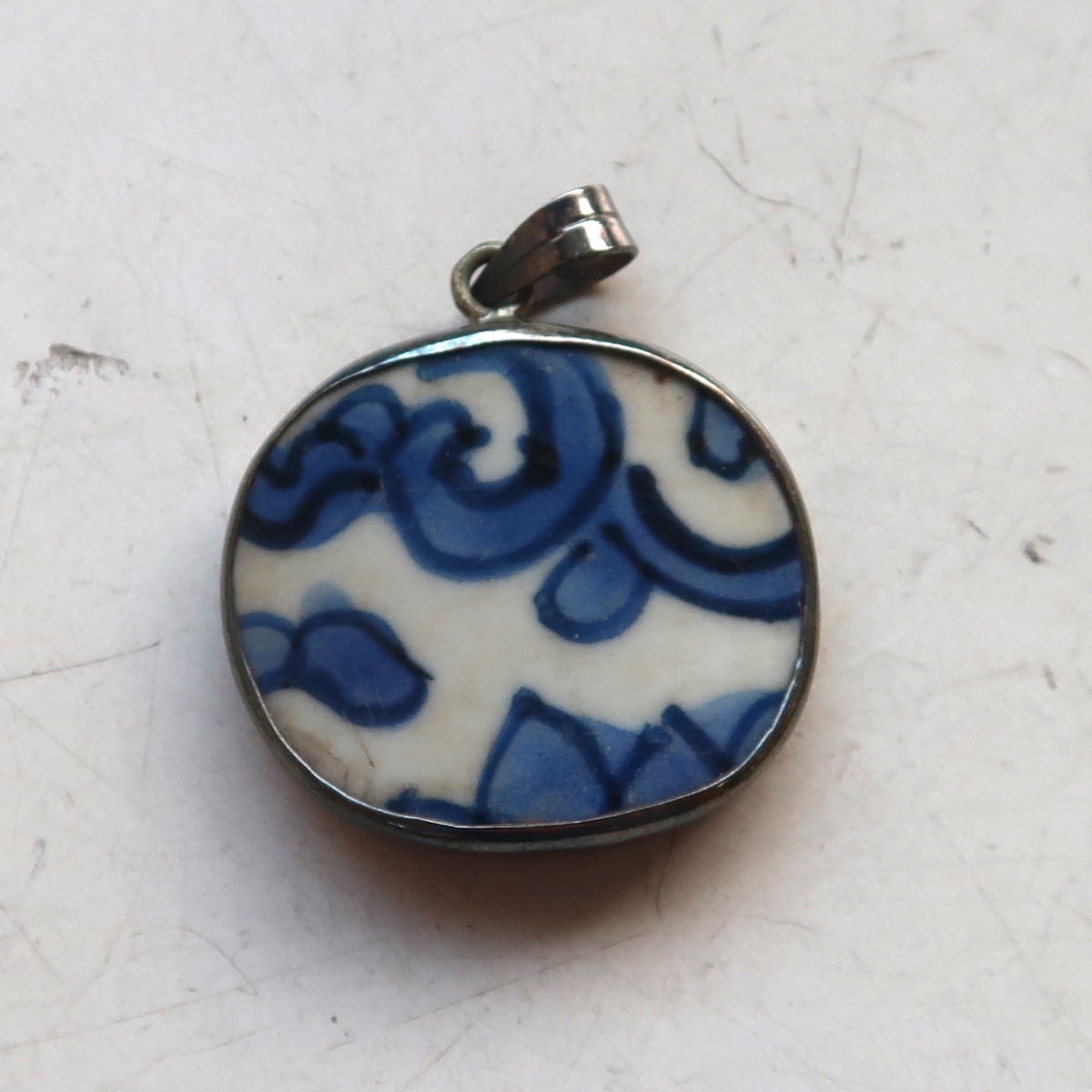 - 925 刻印 SILVER 古い 陶器 焼き物 ネックレス ペンダント ヴィンテージ アクセサリー シルバー 中古
