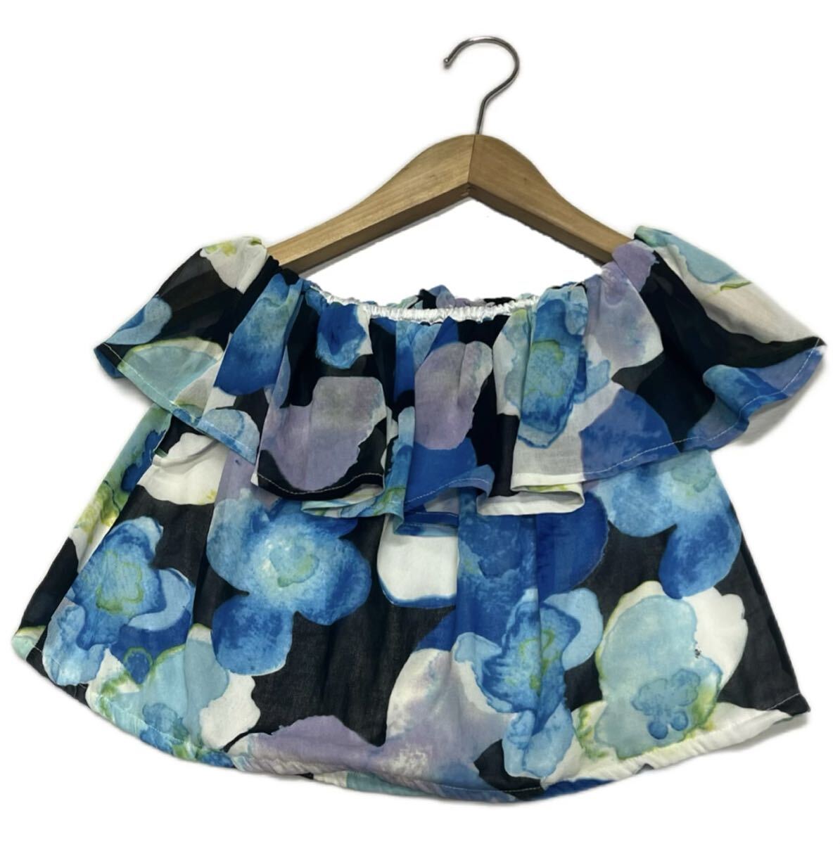 - ESKAI★2way ショート丈 半袖 シフォン ティアードフリル ブラウス/柄