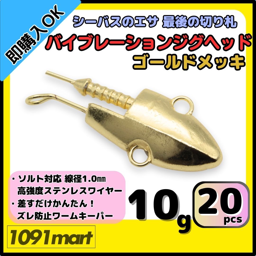 - 【送料無料】バイブレーションジグヘッド ゴールドメッキ仕様 10g 20個セット スイミングジグヘッド VJ風 シーバスルアー ワーム