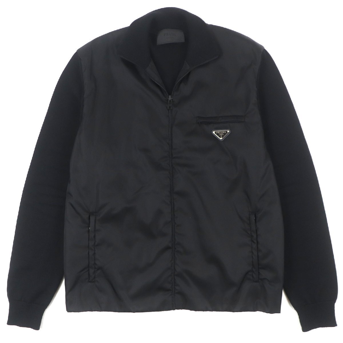 > 極美品▼PRADA プラダ UMC149 Re-Nylon トライアングルロゴ ニット切替 ジップアップ ジャケット ブラック52 イタリア製 正規品メンズ