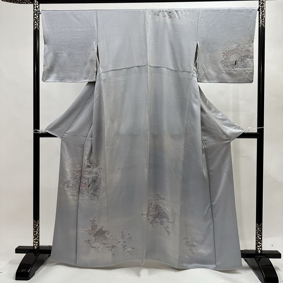 - 【七福】c751 訪問着 刺繍 正絹 袷仕立て 中国三大刺繍 蘇州刺繍 着物 逸品 身丈 約159.5cm 裄 約65cm
